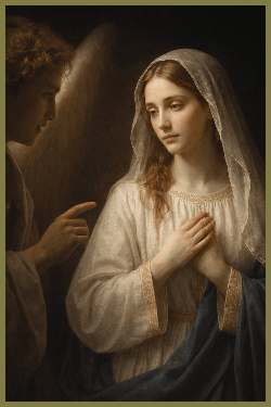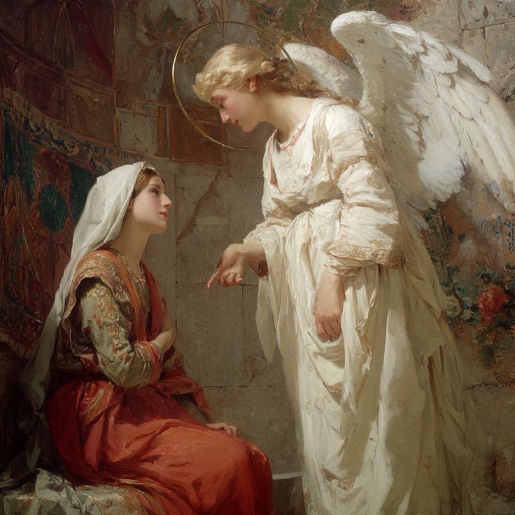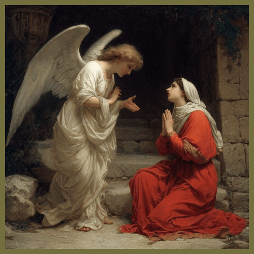 In the sixth month, the angel Gabriel was sent from God to a town of Galilee called Nazareth, to a virgin betrothed to a man named Joseph, of the house of David, and the virgin’s name was Mary. And coming to her, he said, “Hail, favored one! The Lord is with you.” But she was greatly troubled at what was said and pondered what sort of greeting this might be. Then the angel said to her, “Do not be afraid, Mary, for you have found favor with God. Behold, you will conceive in your womb and bear a son, and you shall name him Jesus. He will be great and will be called Son of the Most High, and the Lord God will give him the throne of David his father, and he will rule over the house of Jacob forever, and of his kingdom there will be no end.” But Mary said to the angel, “How can this be, since I have no relations with a man?” And the angel said to her in reply, “The holy Spirit will come upon you, and the power of the Most High will overshadow you. Therefore, the child to be born will be called holy, the Son of God. And behold, Elizabeth, your relative, has also conceived a son in her old age, and this is the sixth month for her who was called barren; 37 for nothing will be impossible for God.” Mary said, “Behold, I am the handmaid of the Lord. May it be done to me according to your word.” Then the angel departed from her.”