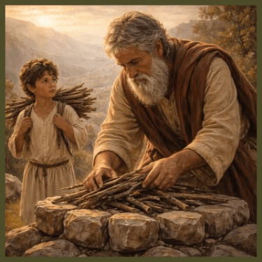 In the early hours of the following day, Abraham demonstrates his deep faith and obedience by preparing to fulfill God’s command without any hesitation. He gathers the necessary materials for the sacrifice and departs with his son Isaac and some servants, underscoring his unwavering commitment to God’s will. Upon reaching the chosen site in the rugged mountains of Moriah, Abraham meticulously builds an altar using unhewn stones, carefully stacking them to create a sturdy foundation for the impending sacrifice. With a heavy heart and trembling hands, he then binds his beloved son Isaac, who is filled with confusion and fear, unaware of the true nature of the sacrifice.